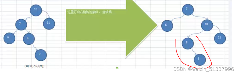 双循环案例 当需要进行左旋或者右旋时区判断是否需要进行双循环:如果进行左旋时,root节点的right的左子树高度大于右子树,此时就需要以root节点的right作为根节点进行右旋,然后在以root节点进行左旋;;;;;反之亦然