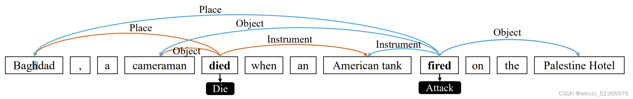- Event argument 事件论元: Event argument is the main attribute of events. It includes entities, nonentity participants, and time, and so on.