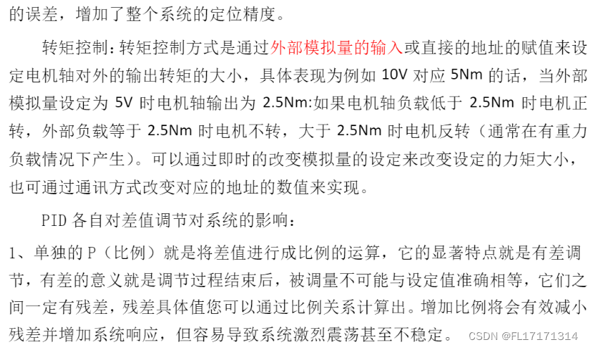 转矩控制是我们平时使用比较多的一种控制方式,我们通过外部模拟量或直接地址赋值来设定输出转矩的大小,那么对应的速度我们是不一定的,因为设备老化摩擦系数的变化,负载的变化,都会影响到速度的输出,这种使用情况下我们基本不会需要调整速度,因为是自动调节,我们需要的是系统的稳定度,持续长时间的转矩稳定。