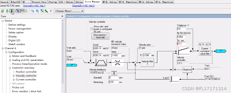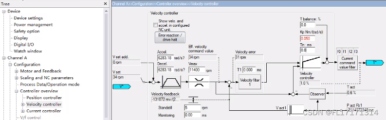 1. 首先在示波器界面选择目标速度(限幅)、实际速度为观察源,采样时长为 1s,采样间