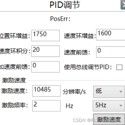 在子页面中选择好激励频率,推荐使用 2Hz,激励位置一般设置为 26212/减速比,PID