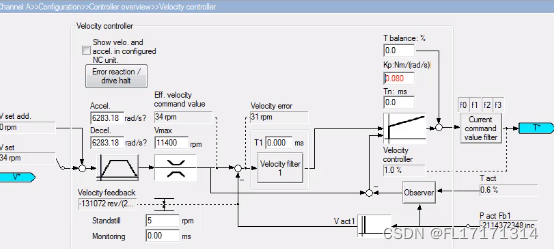 隔为 500us,以目标速度(限幅)作为触发源,触发条件为不等于 0 且触发位置选择在