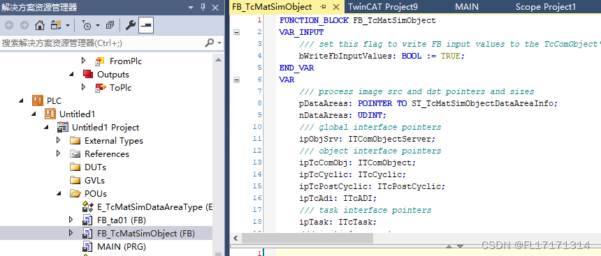 在 Tc Advanced 中找到 PLC Function Block,设置成
