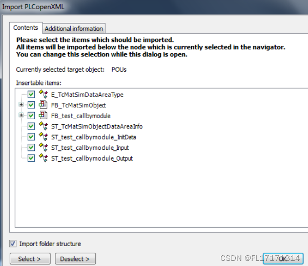 (在默认路径 C:\TwinCAT\3.1\CustomConfig\Modules\test_callbymodule 中 找到 test_callbymodule_PlcOpenPOUs.xml 并且点击 open 加入到 PLC 项目 中)