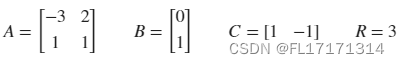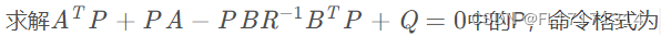 [K,P,r] = lqr(A,B,Q,R),其中K为状态反馈矩阵;P为Riccati方程的解;r为特征值