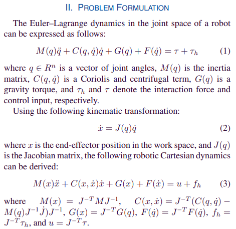 - 优点:与导纳控制相反,它一般用在阻抗参数较小的场合下,对力控制精度要求较高的情况更为适用。
