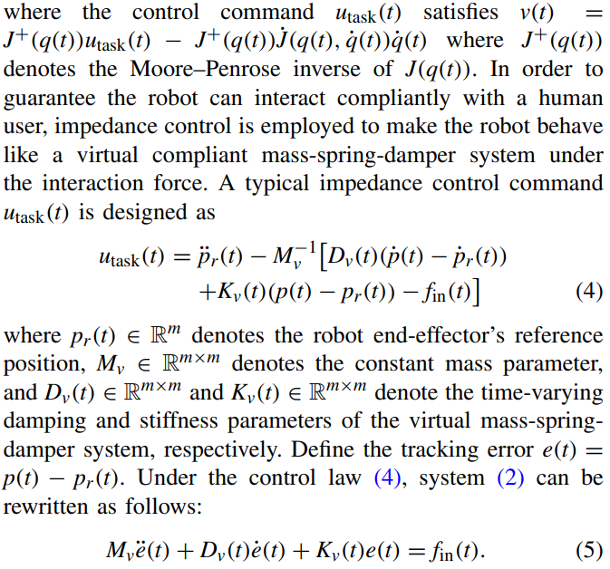 - 阻抗控制与其他控制策略的融合:如何有效地融合阻抗控制与其他控制策略,如位置控制、速度控制等,以实现更复杂的控制任务,也是一个需要研究的问题。