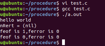 printf("feof is %d,ferror is %d\n",feof(fp),ferror(fp));