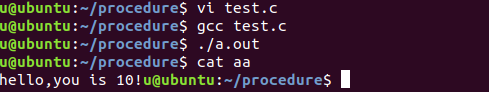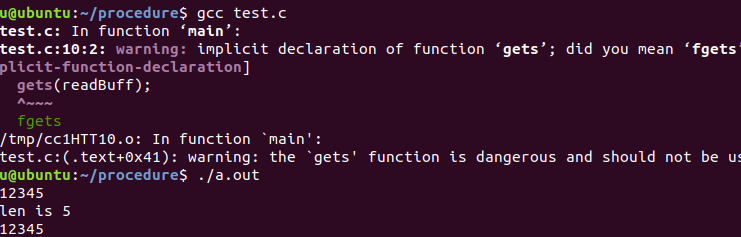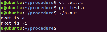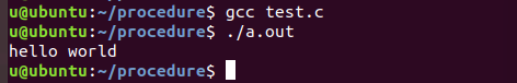将写完的程序 进行编译,生成二进制文件 gcc test.c