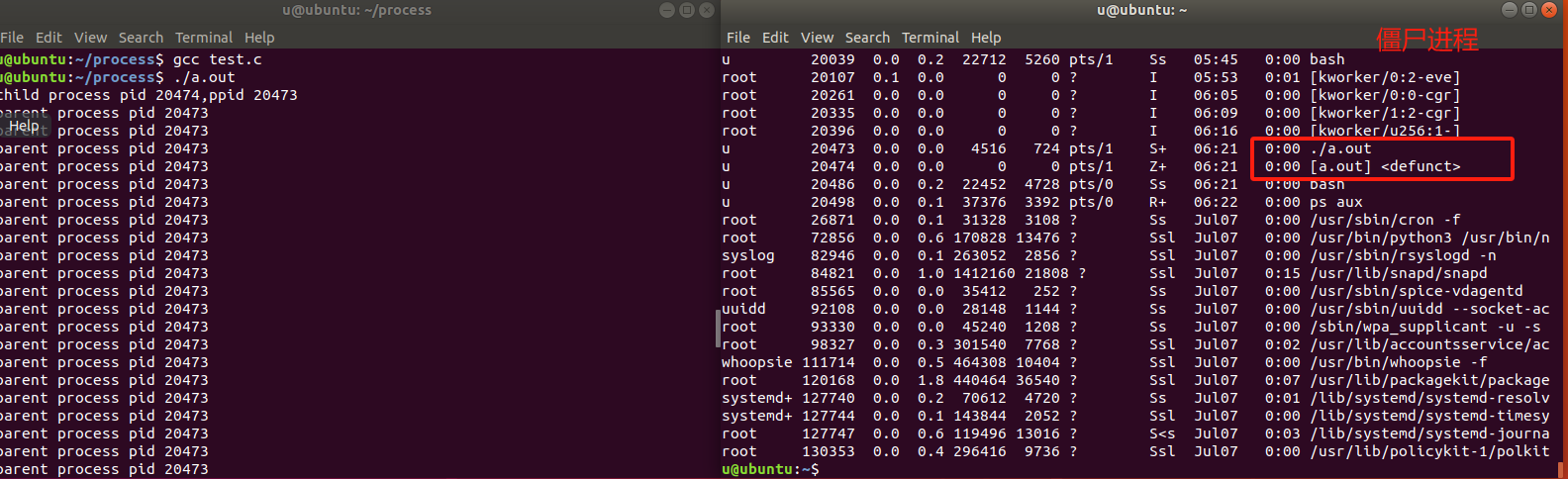 注:此时无法kill僵尸进程,kill父进程可解决僵尸进程