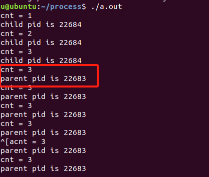 printf("child process pid %d,ppid %d\n",getpid(),getppid());