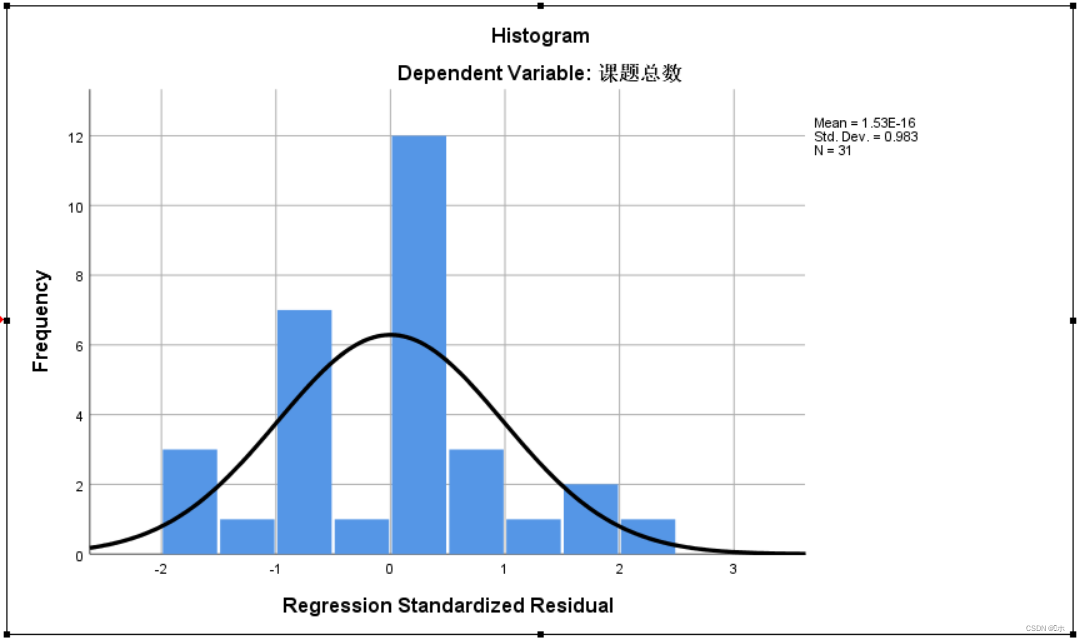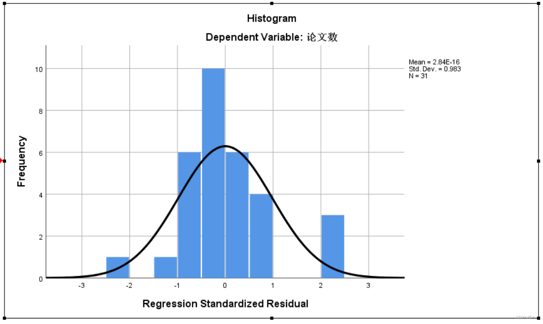 标准化残差的频率直方图:由图可知,标准化残差近似服从正态分布。