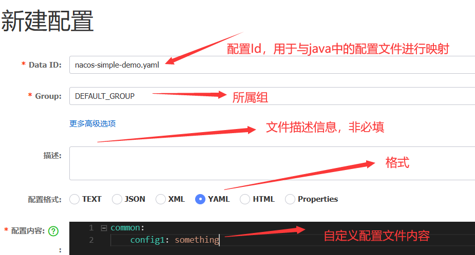 在系统中,一个配置文件通常就是一个配置集,一个配置集可以包含系统的各种配置信息,例如数据源、日志、线程池等等。这些配置集的Id即DataId。
