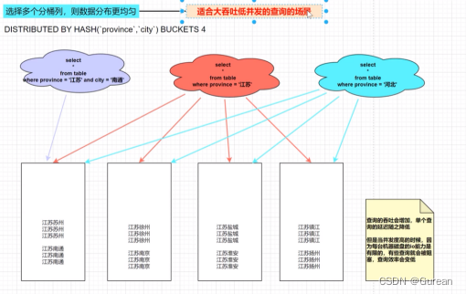 - 分桶列的选择实在查询吞吐和查询并发之间的一种权衡