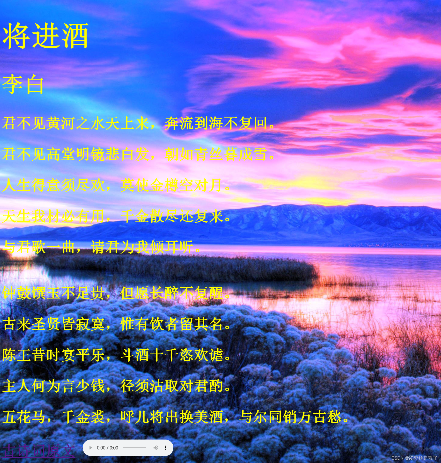 只用html语言展示一首你喜欢的古诗词,使页面尽可能的美观。