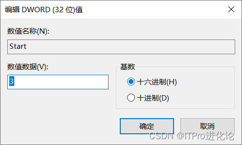 双击Start键值,弹出编辑DWORD(32位)值窗口,修改Start的数值,其中2代表自启动,3代表默认启动,4代表禁止启动,将数值改为2或者3,重启电脑后,插上U盘,可以正常访问U盘。