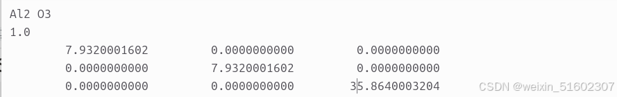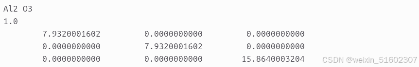 打开刚刚导出的POSCAR文件,修改要添加真空层的方向的晶格矢量(添加真空层)