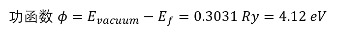 对准后,两个体系的能量相当于拥有同一个参考平面,就可以将slab模型计算的真空能级能量与bulk模型计算的费米能级能量作差,获得功函数