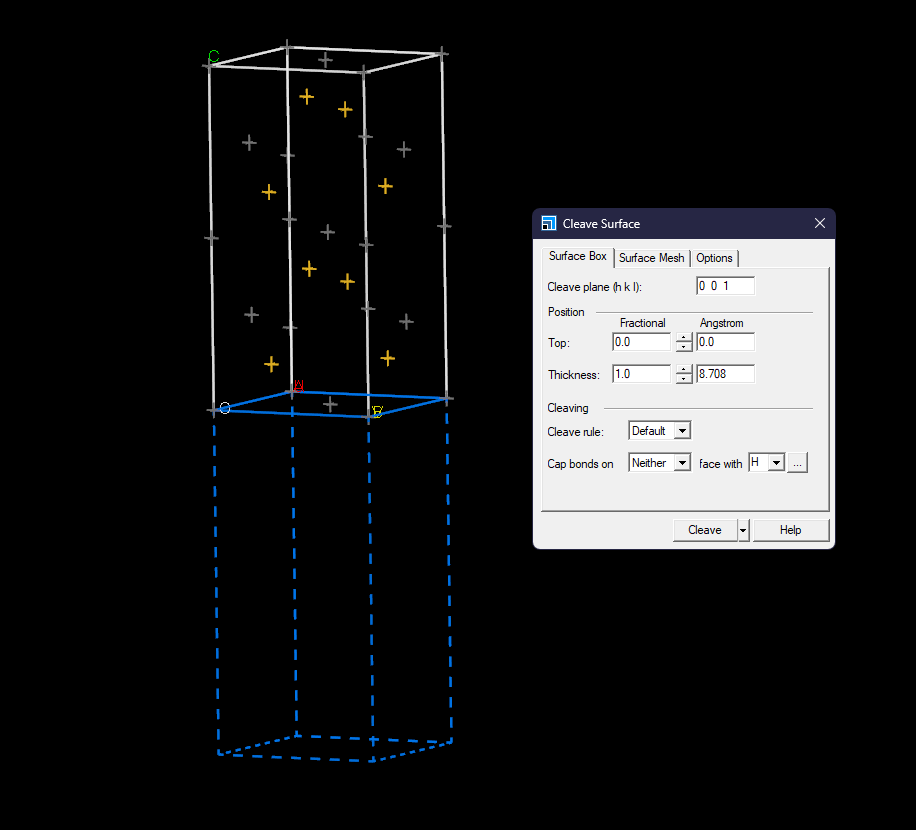 选择切面 Miller 指数,MS会从设置的 Top 位置(top boundary),向下切 Thickness 厚度,作为 slab单胞用于周期重复。