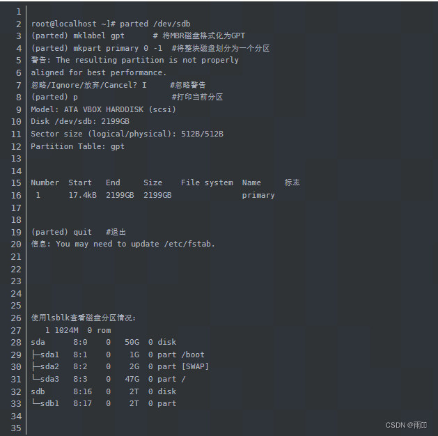 centos lvm管理2t以上硬盘 pvcreate /dev/sdb1 // 创建的一个分区/dev/sdb1 转化成物理卷,主要是添加LVM属性信息并划分PE存储单元后面磁盘目录可以跟多个。vgcreate vgdata /dev/sdb1 //创建卷组,名称为vgdata我理解为创建一个大的存储池,后面基于这个存储池划分。lvextend -L +100G /dev/vgdata/lvdata1 // 将100G的空间划分给/lvdata1。resize2fs /dev/vgdata/lvdata1 //将空间同步。