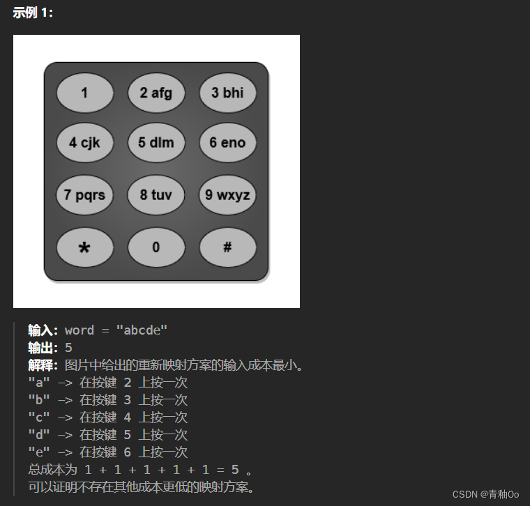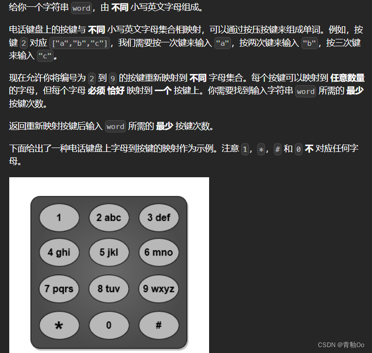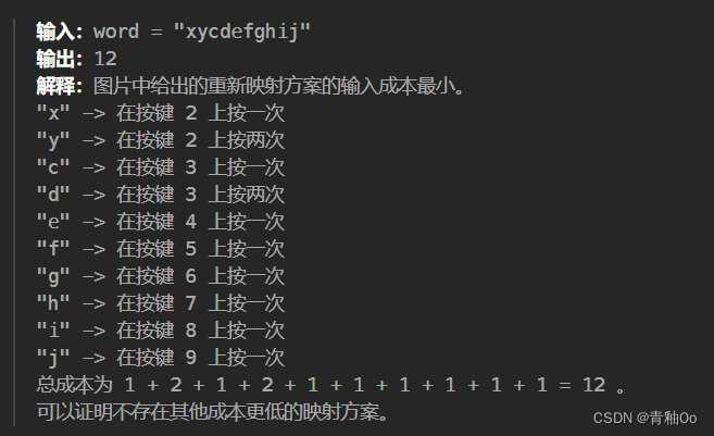 文章讨论了如何计算在给定一个由不同字母组成的字符串中,按顺序输入最少的按键次数。提供了两种方法:一种是逐组累加按键次数,另一种是利用数学公式(n/8*(4k+k+1)+n%8*(k+1)),其中k=n/8。