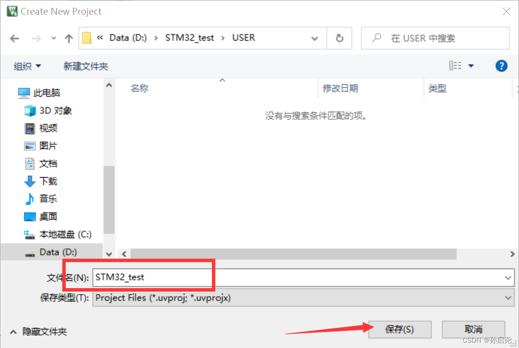 进入USER目录下,输入项目的名称,这个大家自行命名,但最好不要出现中文,点击保存