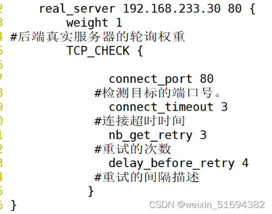 check:负责健康检查,检查后端真实服务器的健康。配置在真实服务器的模块当中。
