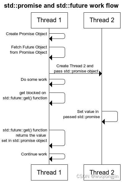 promise是一个协助线程赋值的类,在promise类的内部管理着一个future对象。因此它能够提供一些将数据和future对象绑定起来的接口。