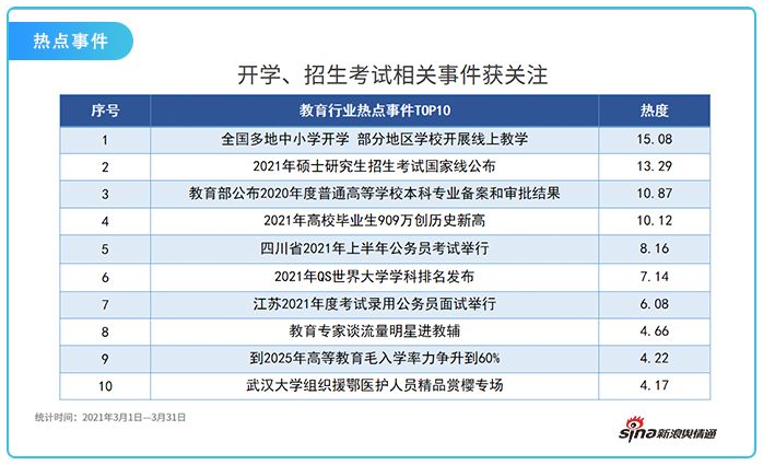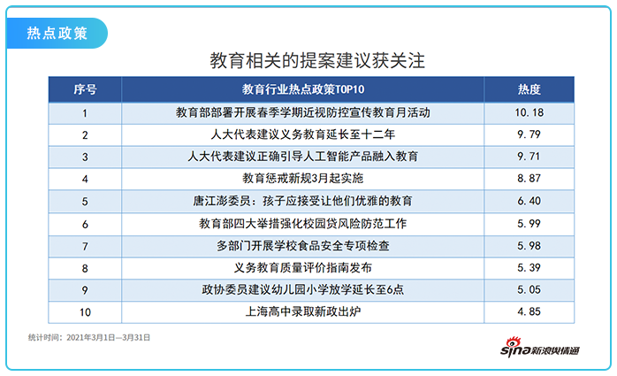 2021年3月教育行业舆情概览:校外培训、两会焦点与在线教育热议