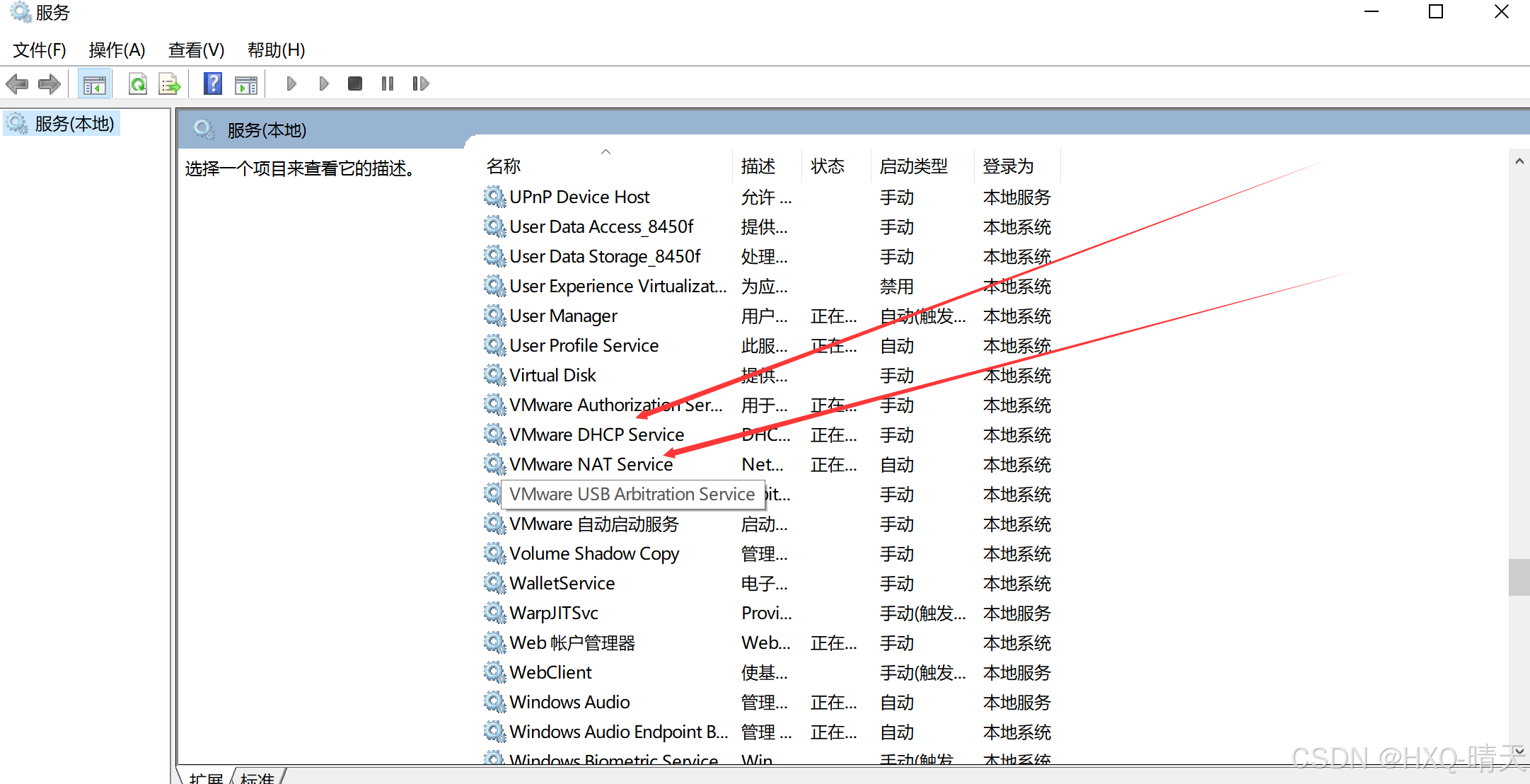打开任务管理器,找到服务,点击打开服务,找到虚拟机网络相关的几个服务,然后启动服务,虚拟机即可正常联网。