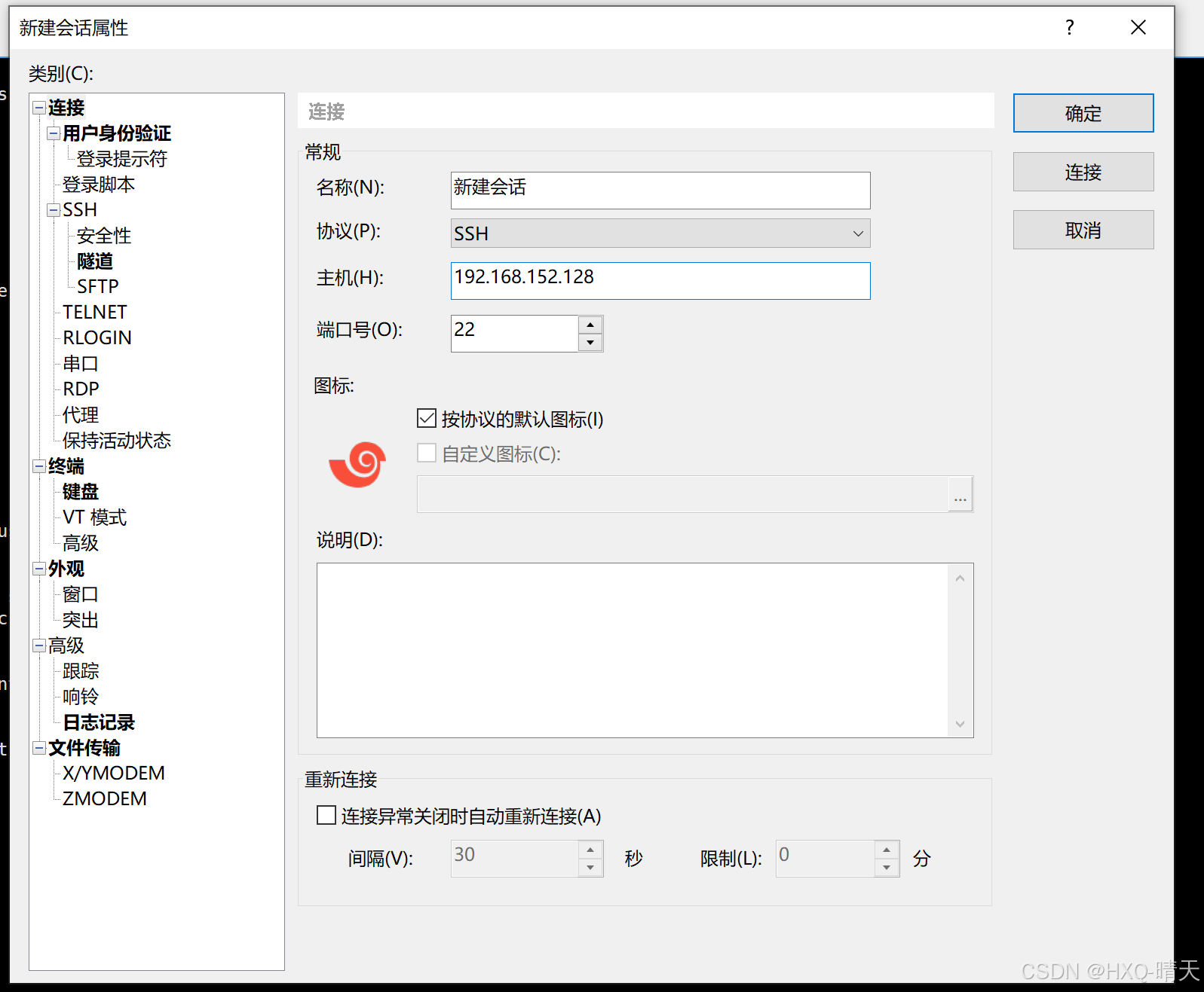 四、在xshell中连接虚拟机
