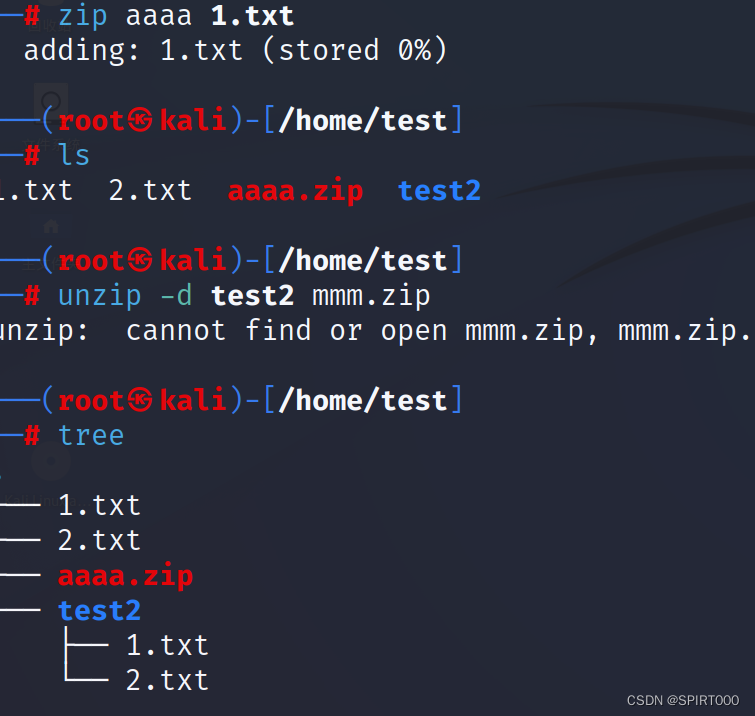 解释:-d 后的test2说的是你解压后要放到什么位置