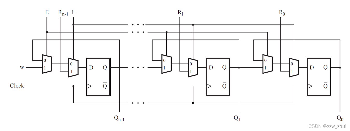 考虑如下所示的 n 位移位寄存器电路: