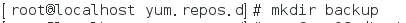 [root@localhost yum.repos.d]# mkdir backup (在yum目录中创建一个backup的文件夹)