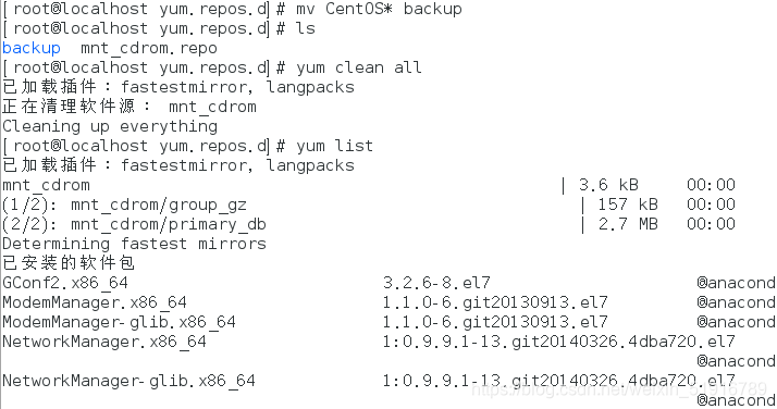 [root@localhost mnt]# cd /etc/yum.repos.d/(进入yum源配置文件目录)