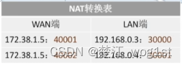 如图是一个NAT转换表,我们可以看到,WAN端只有一个IP地址,但是它用不同的端口来映射了不同LAN端的不同的IP地址,这样一来就做到了在广域网内节省了IP地址(毕竟广域网内只用了一个IP地址就表示了一堆主机)