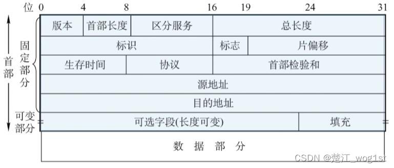 首部最后的长度一定是4B的倍数(可选字段如果不满足是4B的倍数,后面会有一段填充字段)。