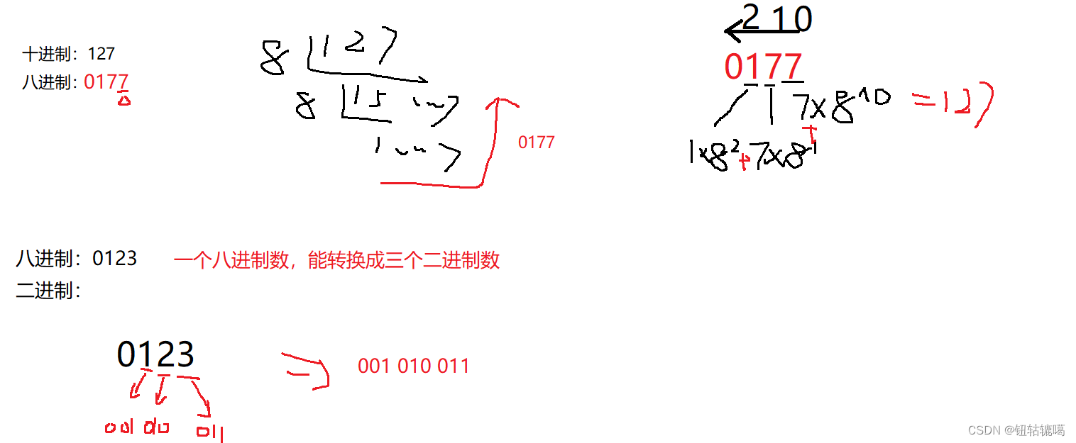 - 八进制转二进制:一个八进制数可以转换成3个二进制数