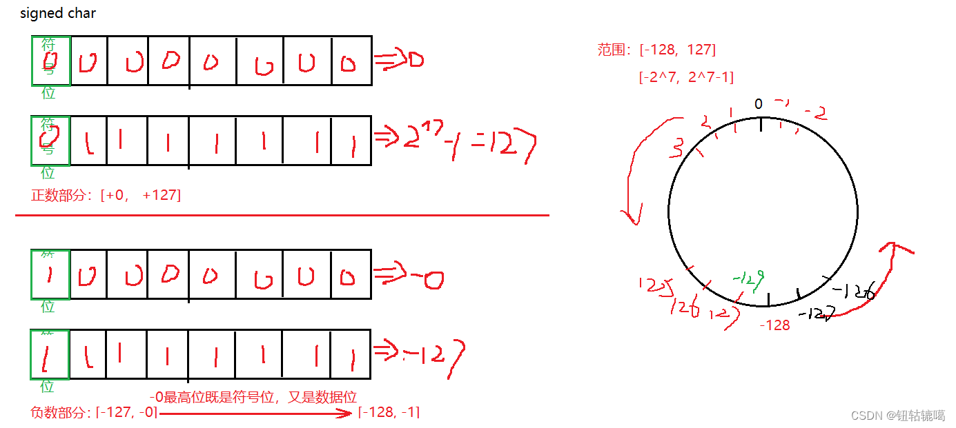 - signed char --->有符号的char [-2^7, 2^7-1]