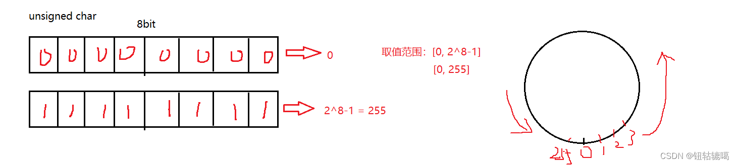 - unsigned char --->无符号的char [0, 2^8-1]