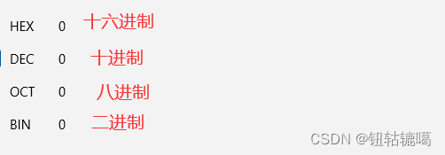 - 十六进制:逢十六进一,0,1,2,3,4,5,6,7,8,9,a,b,c,d,e,f---》16进制以0x开头,十进制16 ---》 16进制: 0x10