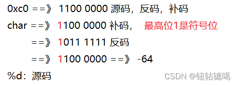 例:char型数据在微机中储存值为0xc0,则printf以%d打印值为? -64