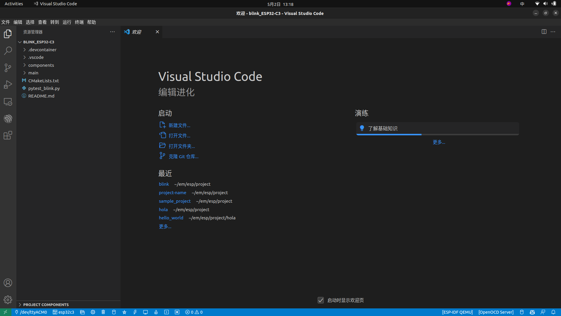开发环境使用Ubuntu22.04.1+Vscode+ESP-IDF插件
