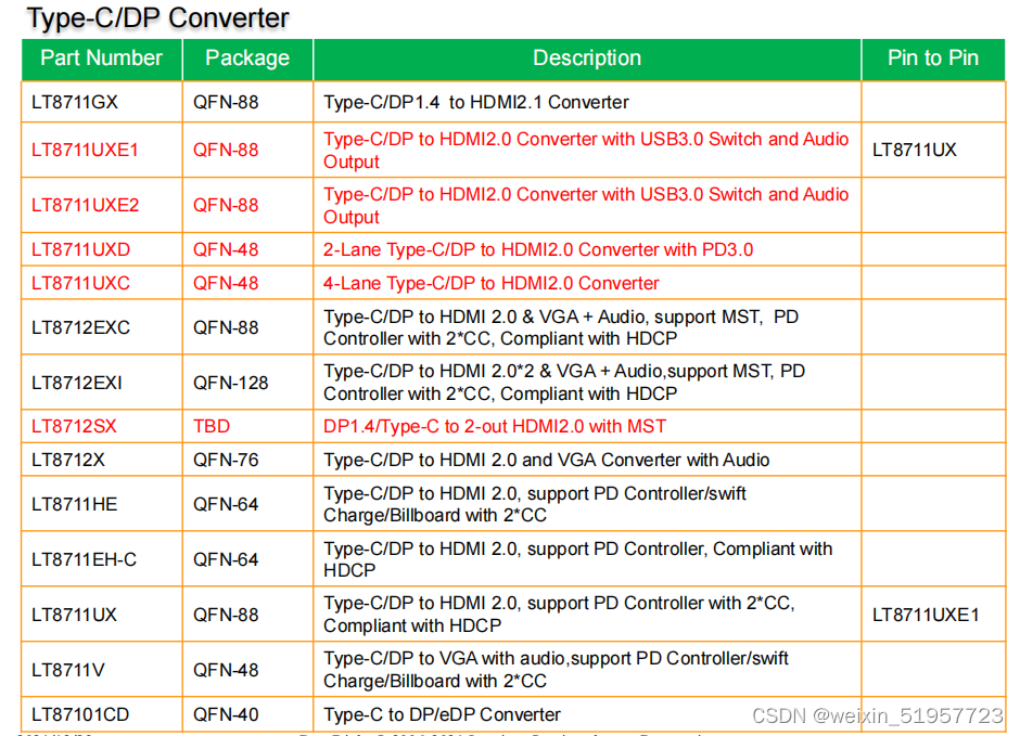 LT8711***均为DP/Type-C to HDMI系列的芯片。