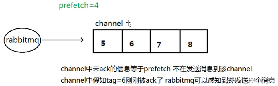 本身消息的发送就是异步发送的,所以在任何时候,channel上肯定不止只有一个消息,另外来自消费者的手动确认本质上也是异步的。因此这里就存在一个未确认的消息缓冲区,因此希望开发人员能限制此缓冲区的大小,以避免缓冲区里面无限制的未确认消息问题。这个时候就可以通过使用basic.qos.方法设置“预取计数”值来完成的。该值定义通道上允许的未确认消息的最大数量。一旦数量达到配置的数量,RabbitMQ.将停止在通道上传递更多消息,除非至少有一个未处理的消息被确认,例如,假设在通道上有未确认的消息5、6、7,8,并且通道的预取计数设置为4,此时RabbitMQ将不会在该通道上再传递任何消息,除非至少有一个未应答的消息被ack。比方说 tag=6这个消息刚刚被确认ACK,RabbitMQ将会感知这个情况到并再发送一条消息。消息应答和QoS预取值对用户吞吐量有重大影响。通常,增加预取值将提高向消费者传递消息的速度。虽然自动应答传输消息速率是最佳的,但是,在这种情况下已传递但尚未处理的消息的数量也会增加,从而增加了消费者的RAM消耗(随机存取存储器),应该小心使用具有无限预处理的自动确认模式或手动确认模式,消费者消费了大量的消息如果没有确认的话,会导致消费者连接节点的内存消耗变大,所以找到合适的预取值是一个反复试验的过程,不同的负载该值取值也不同100到300范围内的值通常可提供最佳的吞吐量,并且不会给消费者带来太大的风险。预取值为1是最保守的。当然这将使吞吐量变得很低,特别是消费者连接延迟很严重的情况下,特别是在消费者连接等待时间较长的环境中,对于大多数应用来说,稍微高一点是最佳的。
