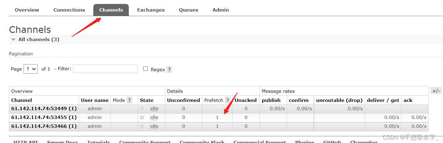 意思就是如果这个任务我还没有处理完或者我还没有应答你,你先别分配给我,我目前只能处理一个任务,然后 RabbitMQ 就会把该任务分配给没有那么忙的那个空闲消费者,当然如果所有的消费者都没有完成手上任务,队列还在不停的添加新任务,队列有可能就会遇到队列被撑满的情况,这个时候就只能添加新的worker或者改变其他存储任务的策略。