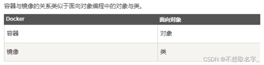 1、从面向对象角度:Docker利用容器(Container)独立运行的一个或一组应用,应用程序或服务运行在容器里面,容器就类似于一个虚拟化的运行环境,容器是用镜像创建的运行实例。就像是Java中的类和实例对象一样,镜像是静态的定义,容器是镜像运行时的实体。容器为镜像提供了一个标准的和隔离的运行环境,它可以被启动、开始、停止、删除。每个容器都是相互隔离的、保证安全的平台