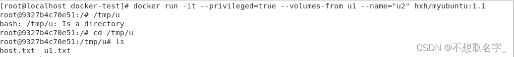 命令:docker run -it --privileged=true --volumes-from 父类 --name=" " 镜像名