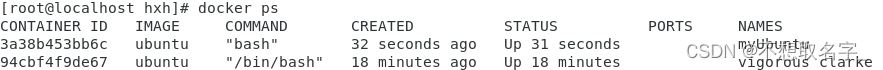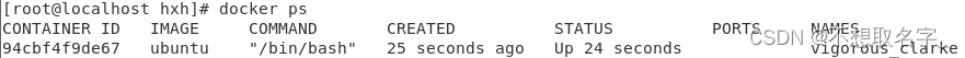 使用镜像ubuntu:latest以后台模式启动一个容器docker rgn -d ubuntu